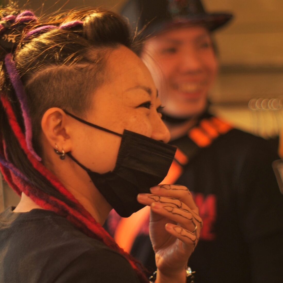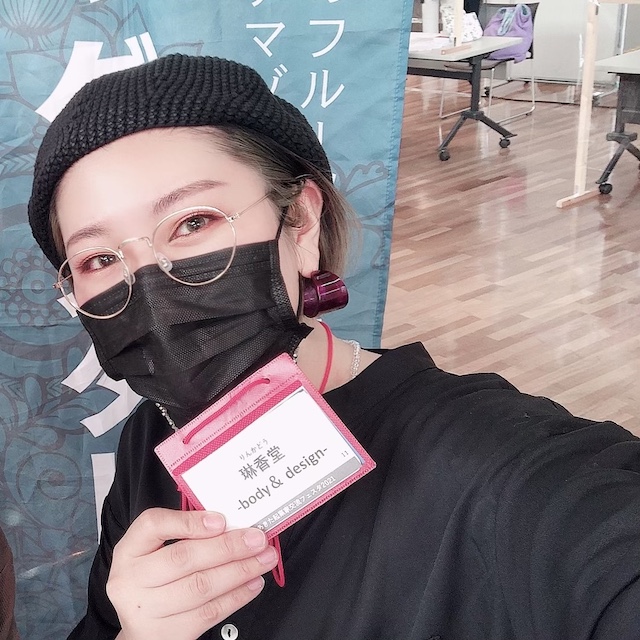 施術後1時間くらいで洗い流すと、一旦描いたデザインが消えるか、ごく薄く残ります。(夏場で汗をかきやすいので万博会場内で洗い流してください)